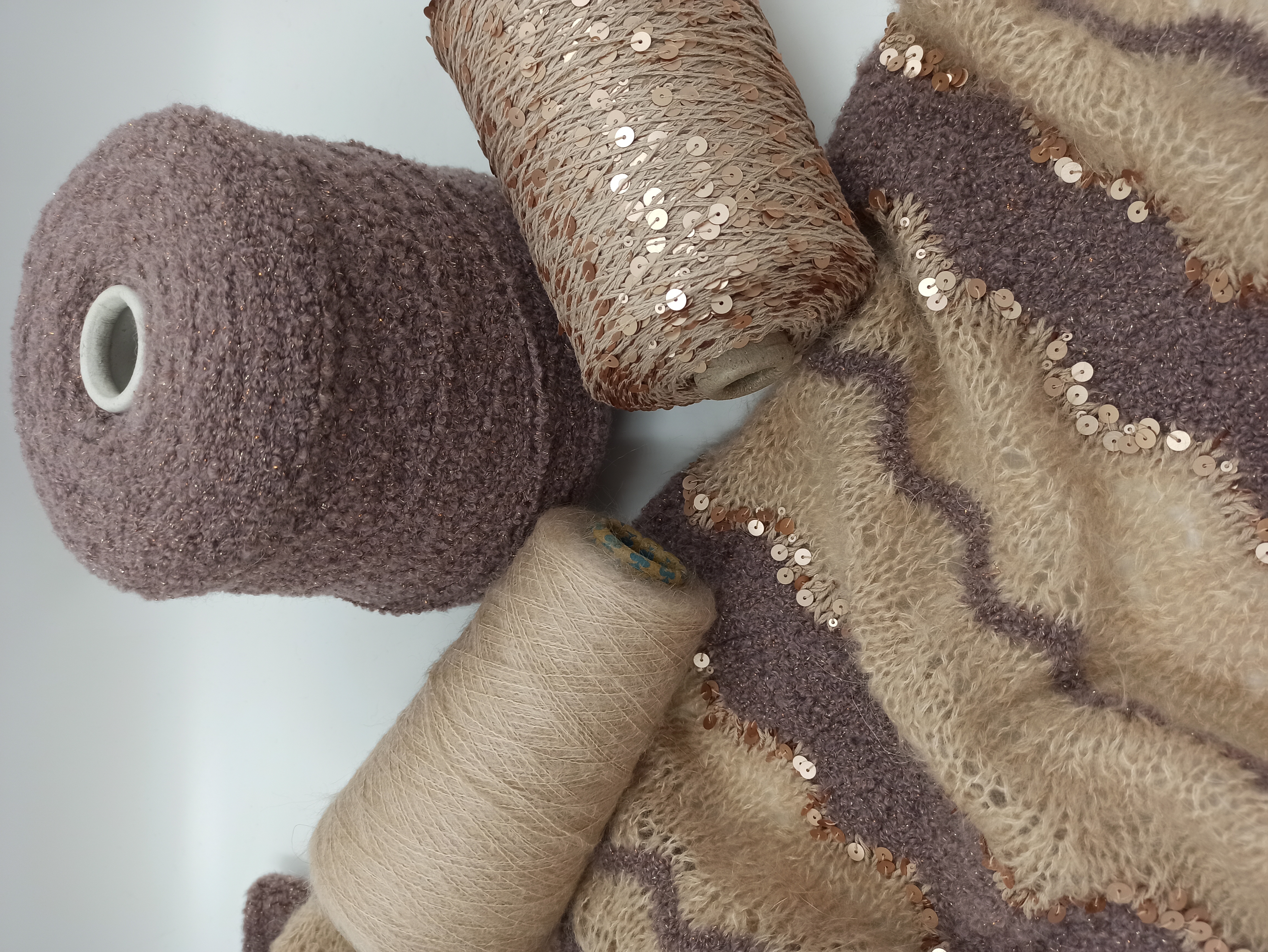 Набор для шарфа, альпака, меринос, мохер, пайетки, цвет бежевый
